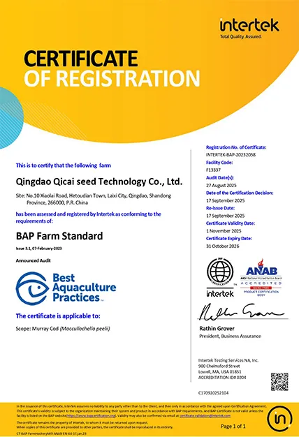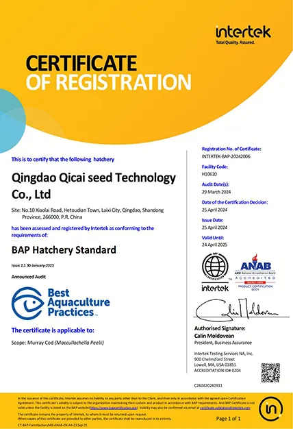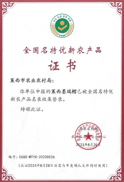 国家高新技术企业、 双项BAP国际认证、 全国水产绿色健康养殖技术推广“五大行动”骨干基地、 “全国名特优新农产品”、 墨瑞鳕省级良种场等