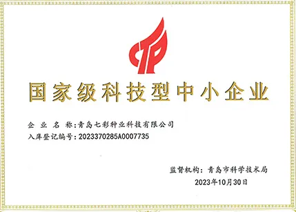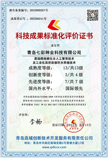 七彩种业深耕设施农业技术和水产种业技术多年,陆基工业化循环水、全人工繁育和养殖技术是公司的核心技术和生产模式,已将上述技术应用于墨瑞鳕、三文鱼等高端鱼类的养殖与繁育,并实现产业化推广,同时获得了多项成果和行业认可。