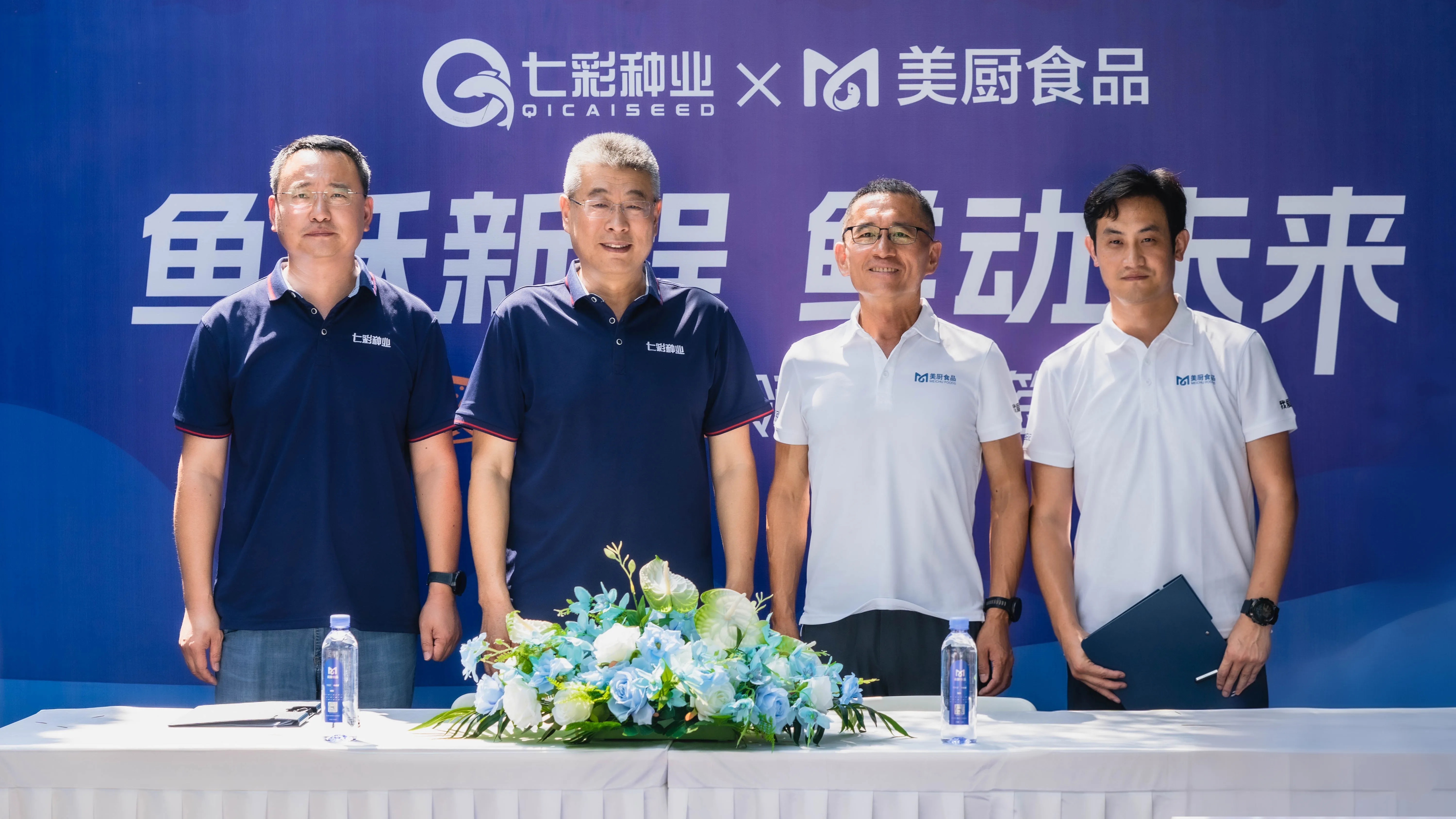On July 4th, Qingdao Qicai Seed Industry Technology Co., Ltd. (hereinafter referred to as Qicai Seed Industry) and Qingdao Meichu Food Co., Ltd. (hereinafter referred to as Meichu Food) successfully held the signing ceremony of "Leaping Forward with Fish, Freshening the Future – Salmon Fresh Leadership Plan". Representatives from both parties attended the ceremony and signed the framework agreement on salmon sales cooperation.