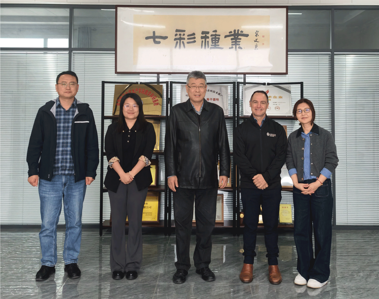 2026年4月16日,詹姆斯・库克大学(James Cook University)热带未来研究院(Tropical Futures Institute)院长、教授迪恩・杰里(Prof. Dean Jerry),副教授申雪雁,与中国海洋大学水产学院副教授李惠茹一行莅临公司参观考察,七彩种业董事长宫庆礼教授全程陪同接待。